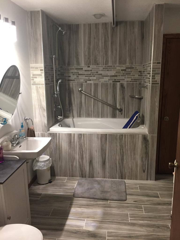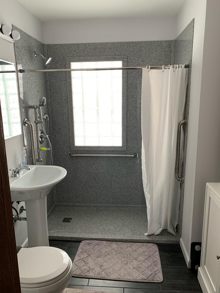 We install roll-in showers, grab bars, wider entrances, and non-slip surfaces to improve safety and comfort.